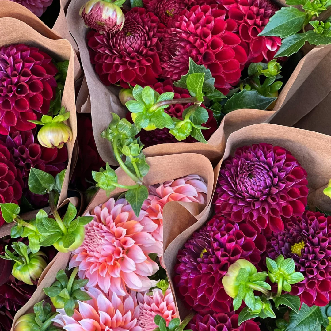 Growing dahlias is our specialty. At Ivy Oaks, we grow hundreds of dahlias every season. Angie is an experienced dahlia grower with extensive hands-on knowledge developed over many growing seasons. Skilled in every stage of cultivation, from selecting and storing tubers to planting, pruning, and harvesting blooms at their peak.